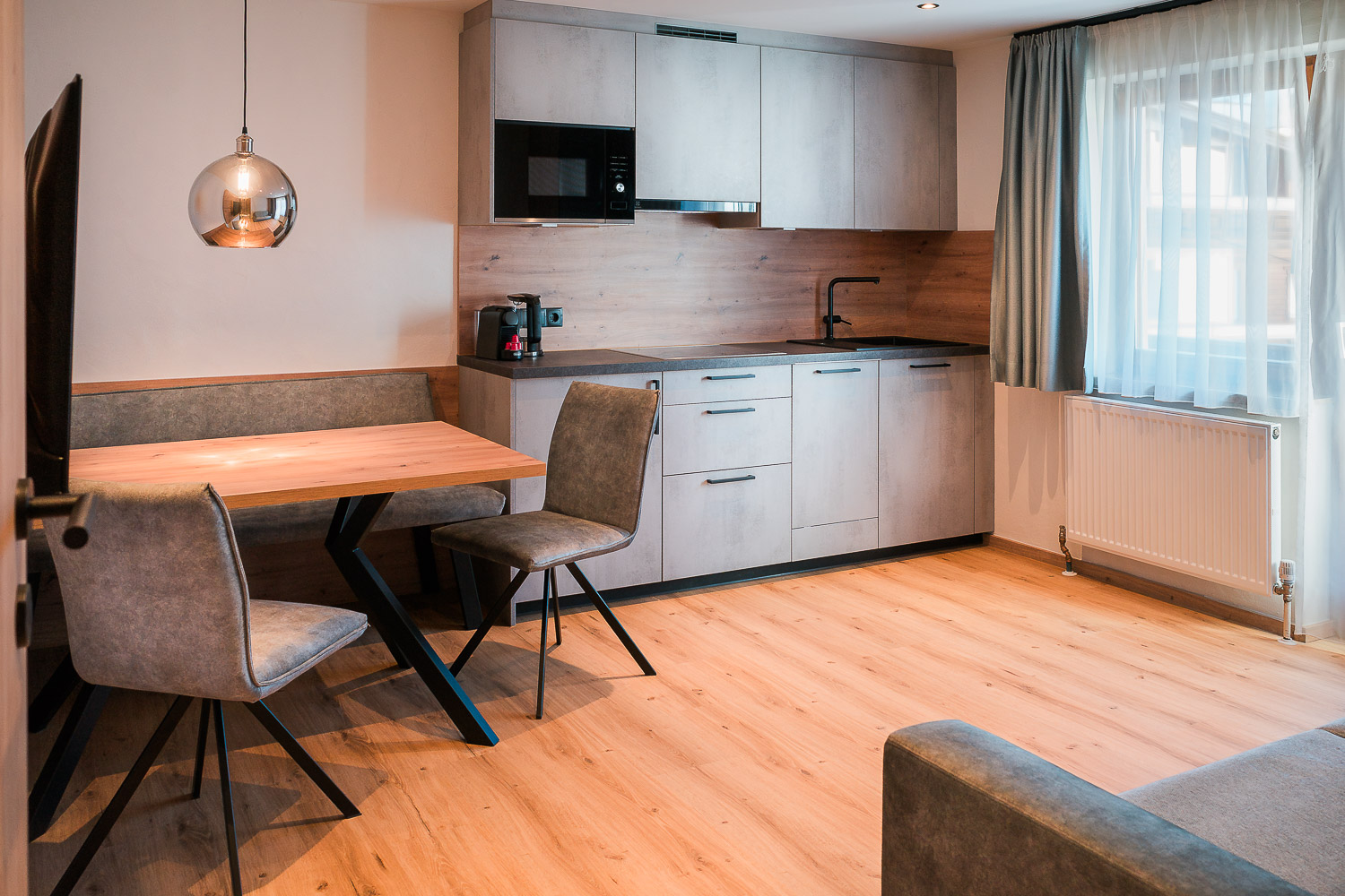 Die Harmonie liegt direkt im Zentrum von Nauders. Restaurants, Cafés, Geschäfte und Freizeitangebote erreichen Sie bequem zu Fuß.